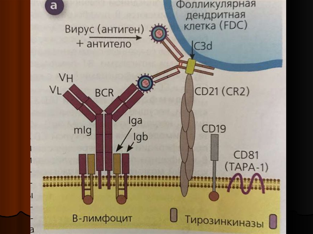 2) Корецепторный комплекс мембранных молекул (CD19, CD21, TAPA1), связанных с системами внутриклеточного проведения сигналов