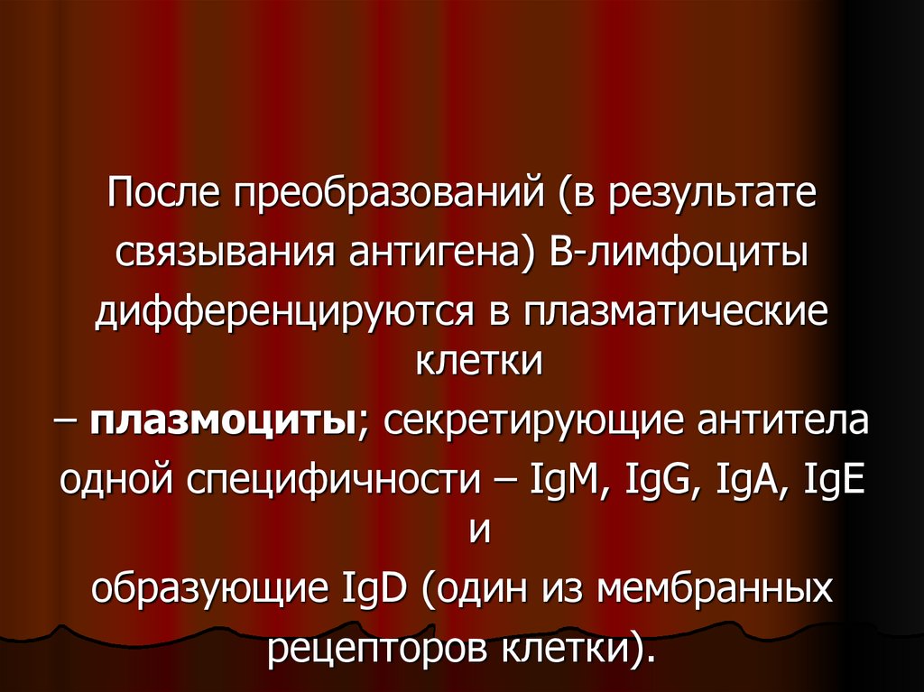 После преобразований (в результатесвязывания антигена) В-лимфоциты
