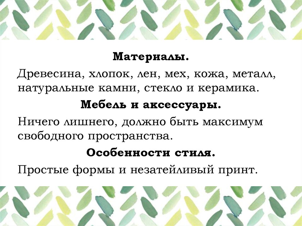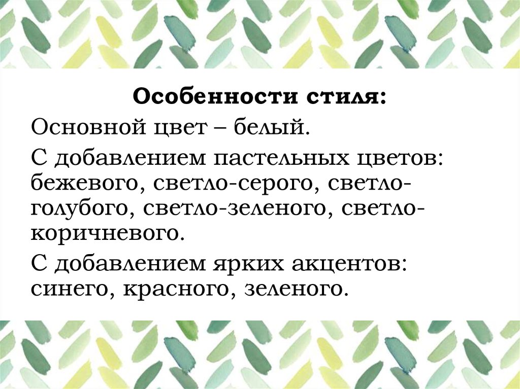 Особенности стиля:Основной цвет – белый.