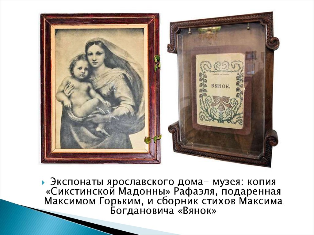 Экспонаты ярославского дома- музея: копия«Сикстинской Мадонны» Рафаэля, подаренная
