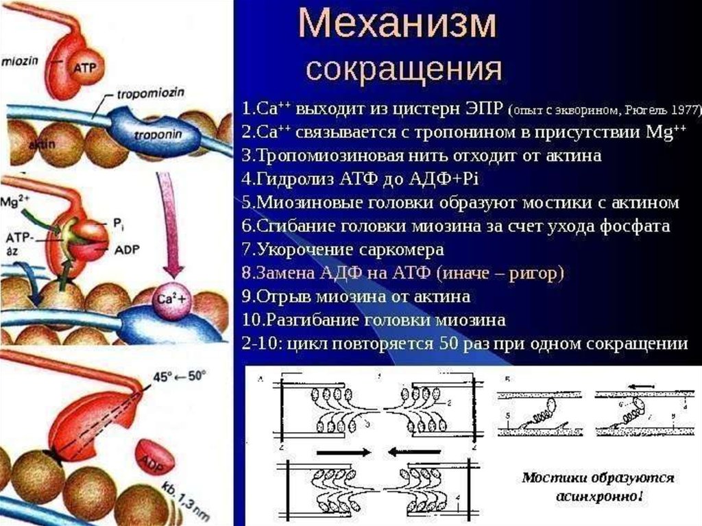 фибриллярных белков — актина и миозина — при обязательном участии