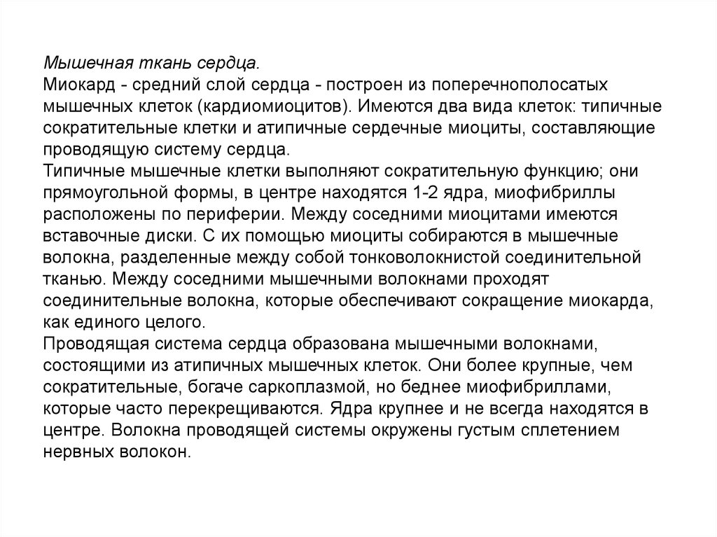 мышечных клеток (кардиомиоцитов). Имеются два вида клеток: типичные