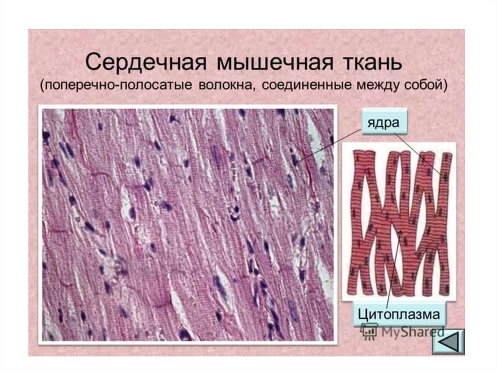 Мышечная ткань сердца.Миокард - средний слой сердца - построен из поперечнополосатых