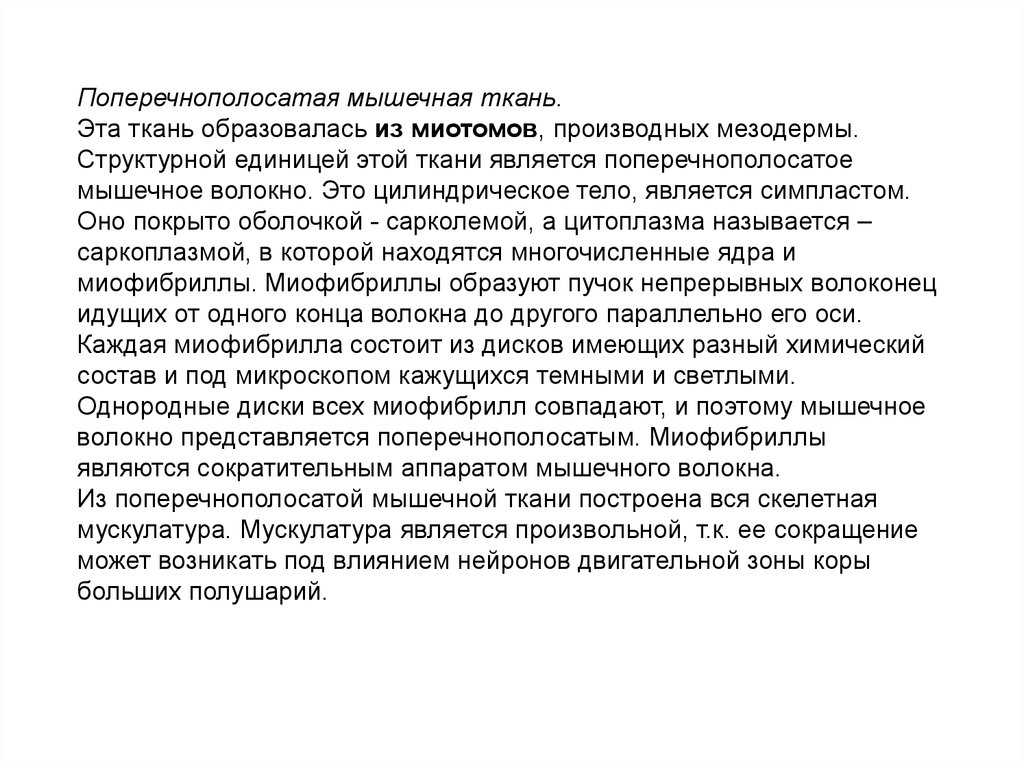 Поперечнополосатая мышечная ткань.Эта ткань образовалась из миотомов, производных мезодермы.