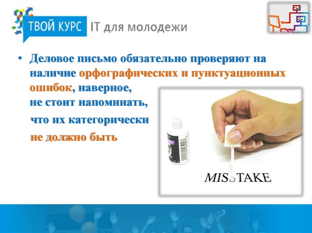 • Деловое письмо обязательно проверяют наналичие орфографических и пунктуационных