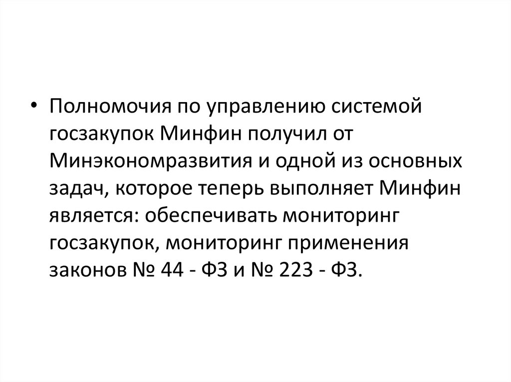 • Полномочия по управлению системойгосзакупок Минфин получил от