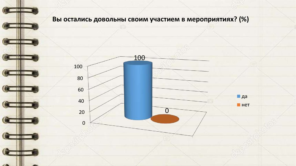 Вы остались довольны своим участием в мероприятиях? (%)100