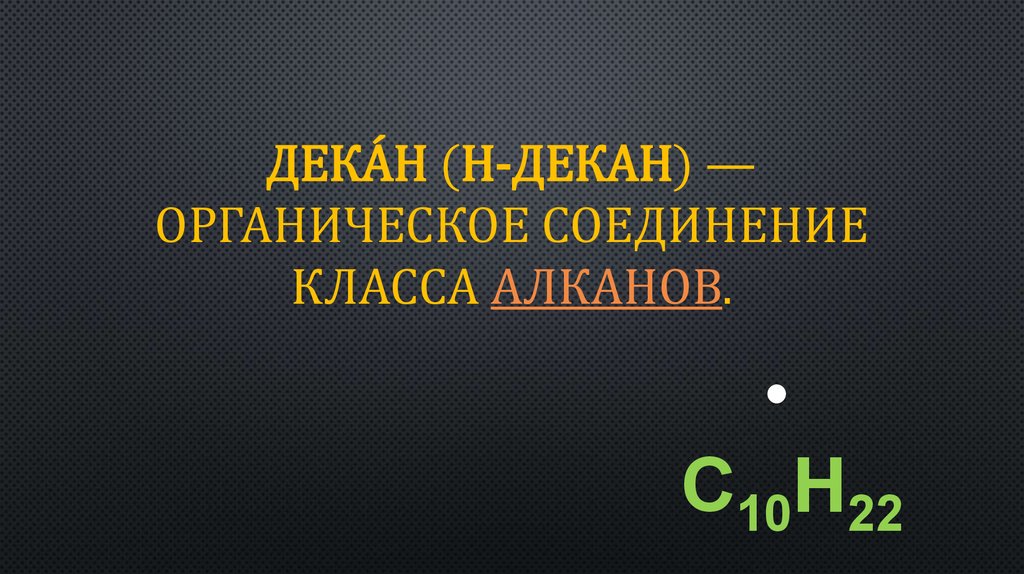 1. Дека́н (н-декан) — органическое соединение класса алканов.