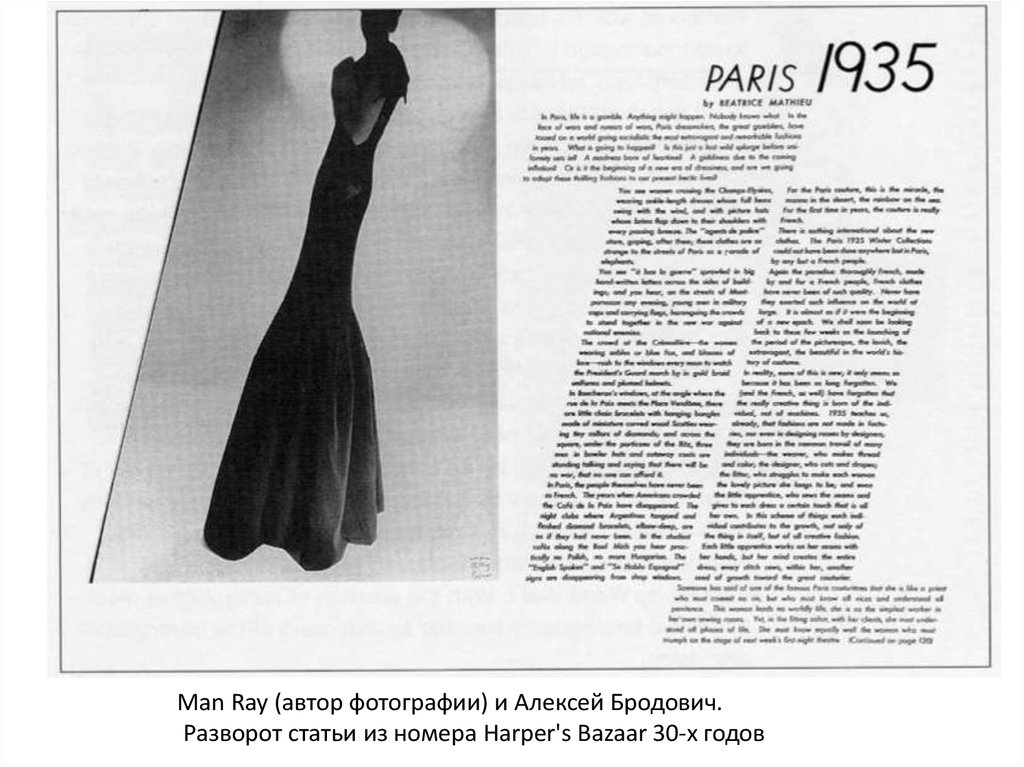 Man Ray (автор фотографии) и Алексей Бродович.Разворот статьи из номера Harper's Bazaar 30-х годов