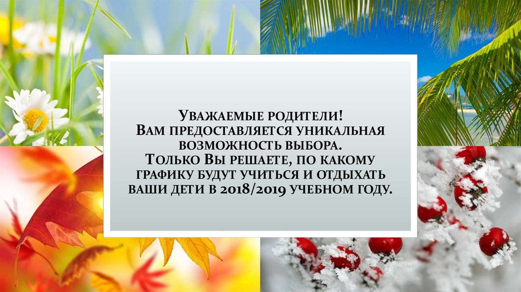 1. Уважаемые родители! Вам предоставляется уникальная возможность выбора. Только Вы решаете, по какому графику будут учиться и