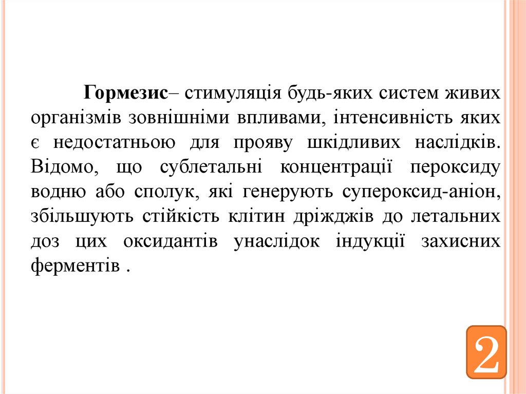 Гормезис– стимуляція будь-яких систем живихорганізмів зовнішніми впливами, інтенсивність яких
