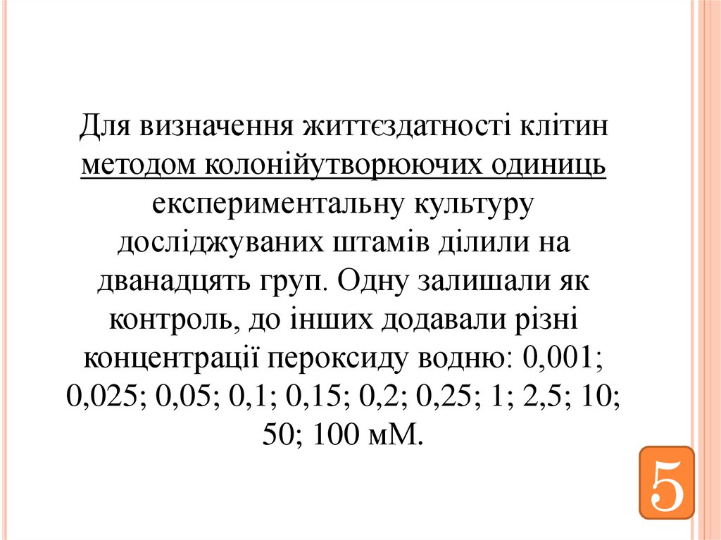 Відомо, що сублетальні концентрації пероксиду