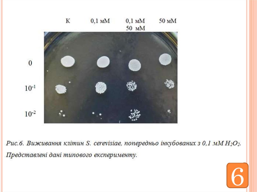 4. Культуру дріжджів вирощували в середовищі YPD: 2 % глюкози, 2 % пептону, 1 % дріжджового екстракту, для створення умов стресу