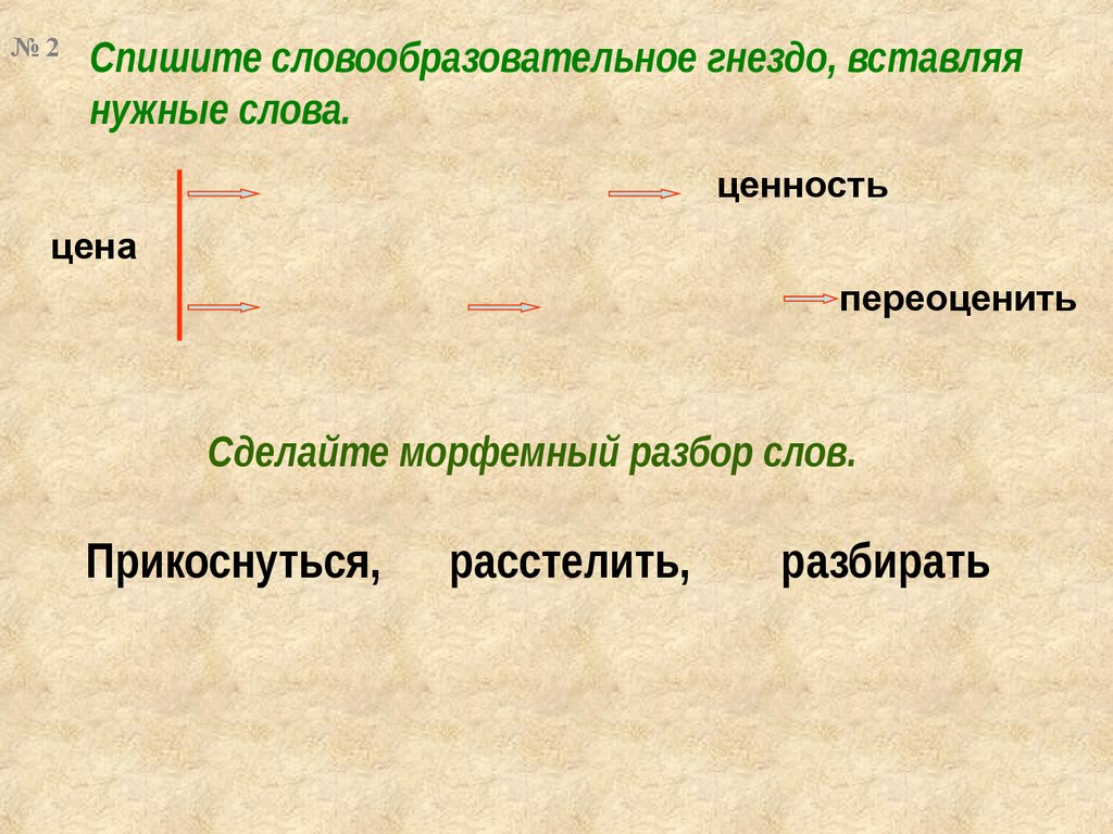 №2Спишите словообразовательное гнездо, вставляя