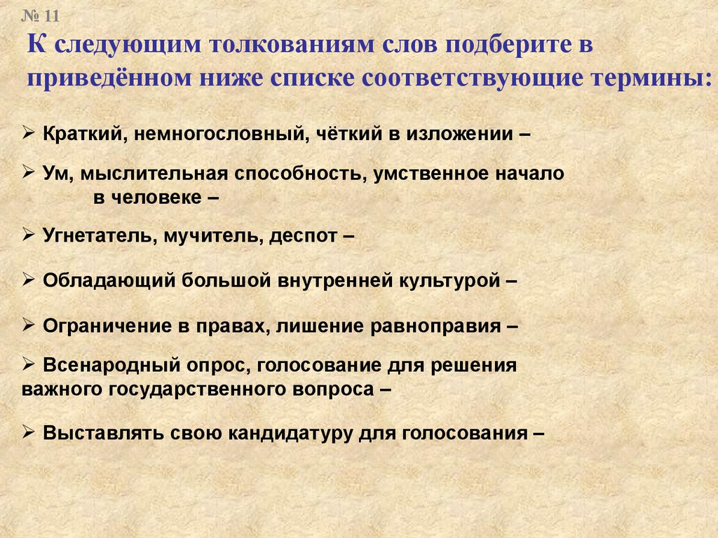 № 11К следующим толкованиям слов подберите в