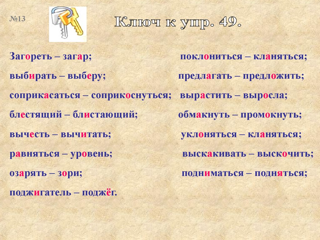 №13Загореть – загар;