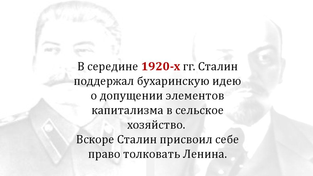 В середйне 1920-х гг. Сталйнподдержал бухарйнскую йдею