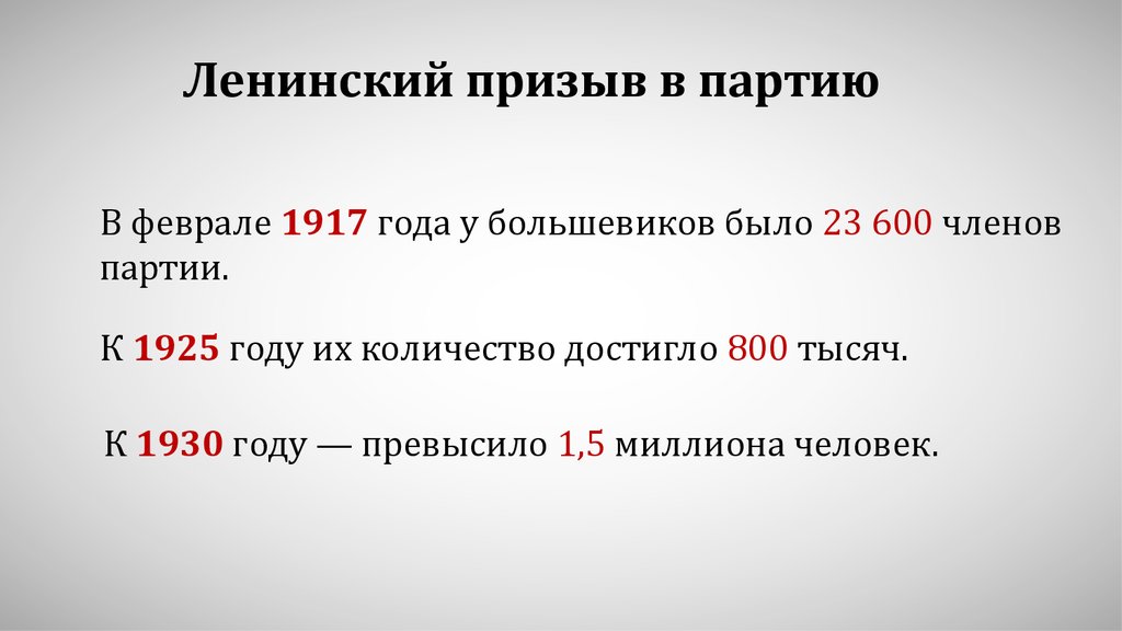 Ленинский призыв в партиюВ феврале 1917 года у большевйков было 23 600 членов