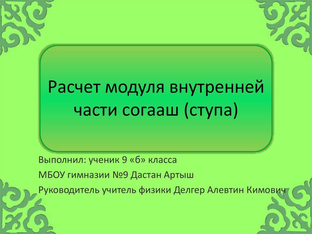 Выполнил: ученик 9 «б» классаМБОУ гимназии №9 Дастан Артыш