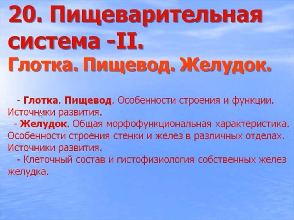 Пищеварительная система: Глотка. Пищевод. Желудок. Кишечник. Лекция 3