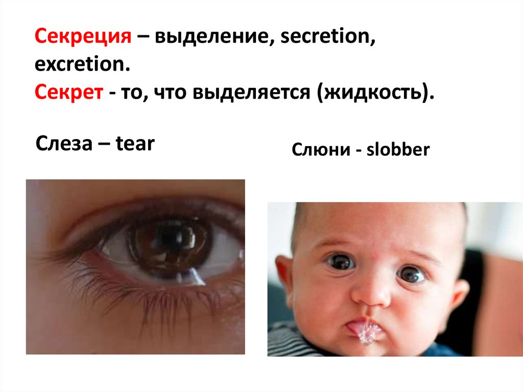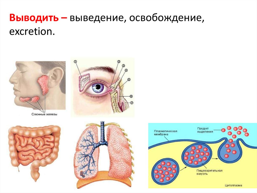 Секреция – выделение, secretion,excretion.