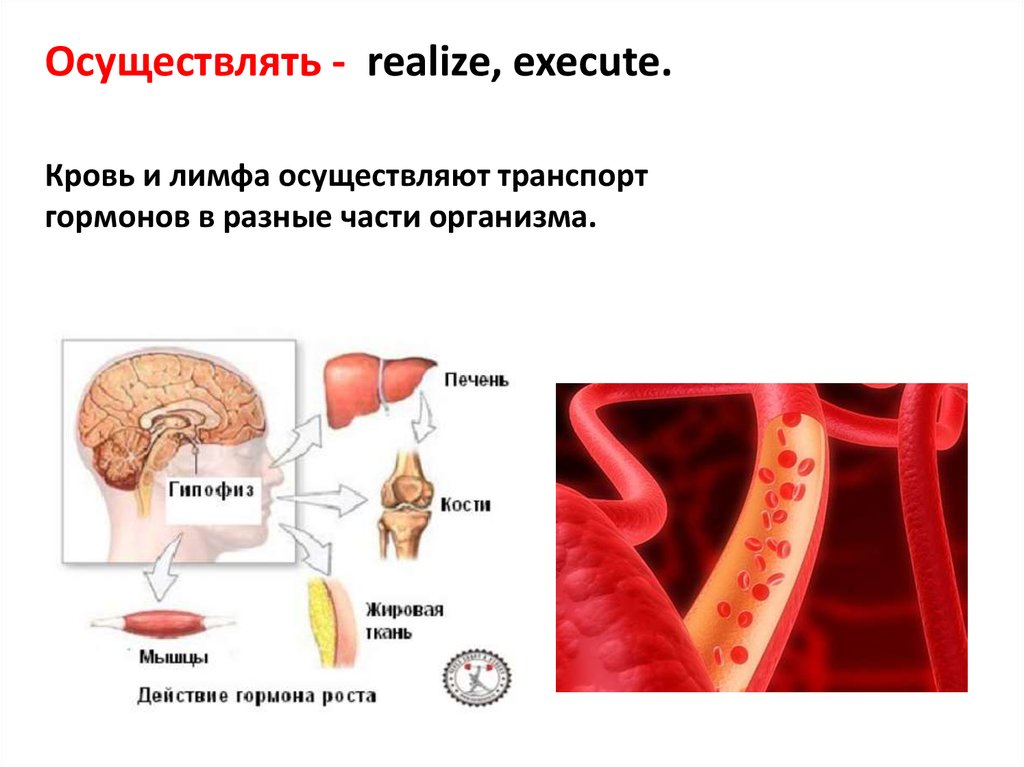 Осуществлять - realize, execute.Кровь и лимфа осуществляют транспорт