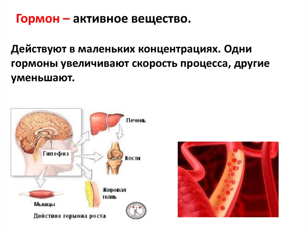 Гормон – активное вещество.Действуют в маленьких концентрациях. Одни