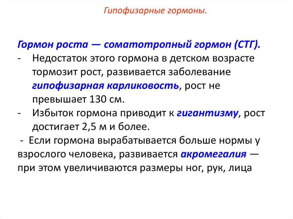Гипофизарные гормоны.Гормон роста — соматотропный гормон (СТГ).