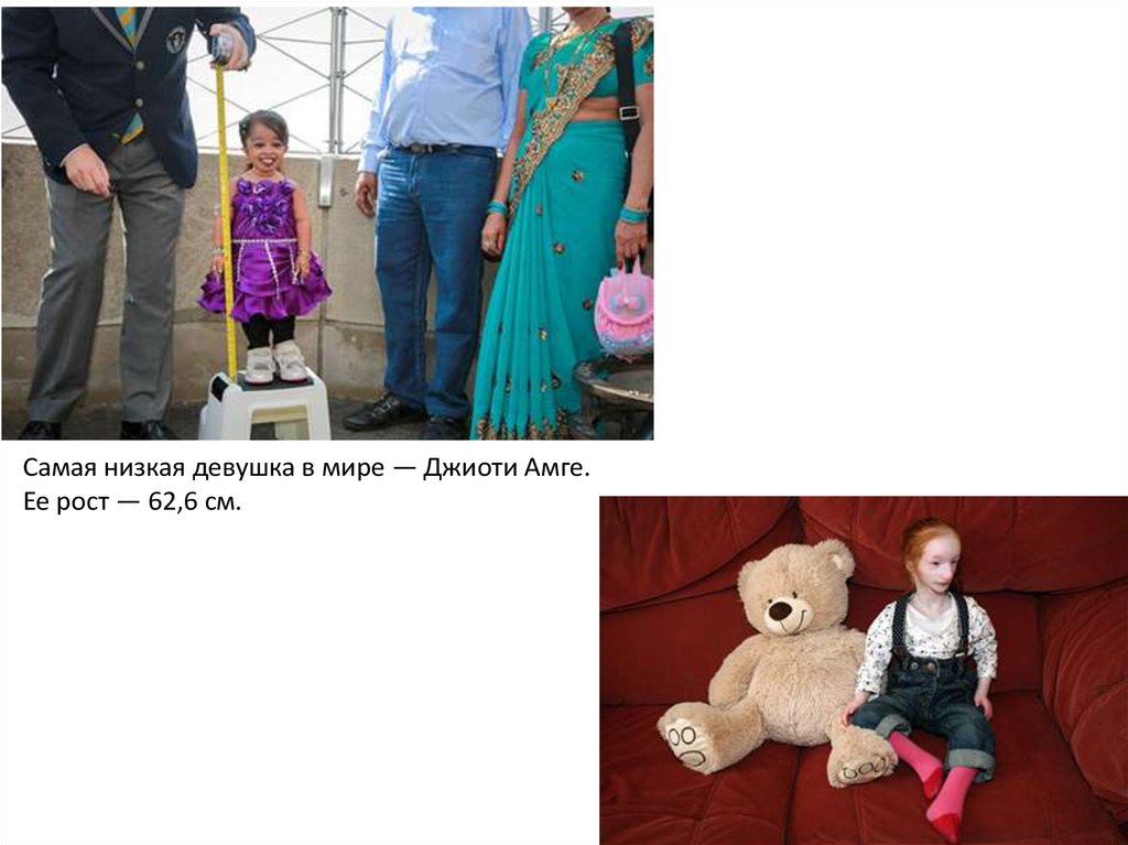 Самая низкая девушка в мире — Джиоти Амге.Ее рост — 62,6 см.