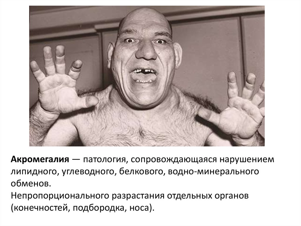Акромегалия — патология, сопровождающаяся нарушениемлипидного, углеводного, белкового, водно-минерального