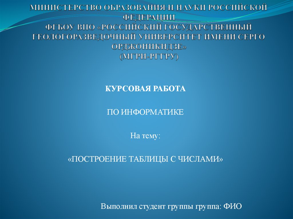 1. МИНИСТЕРСТВО ОБРАЗОВАНИЯ И НАУКИ РОССИЙСКОЙ ФЕДЕРАЦИИ ФГБОУ ВПО «РОССИЙСКИЙ ГОСУДАРСТВЕННЫЙ ГЕОЛОГОРАЗВЕДОЧНЫЙ УНИВЕРСИТЕТ