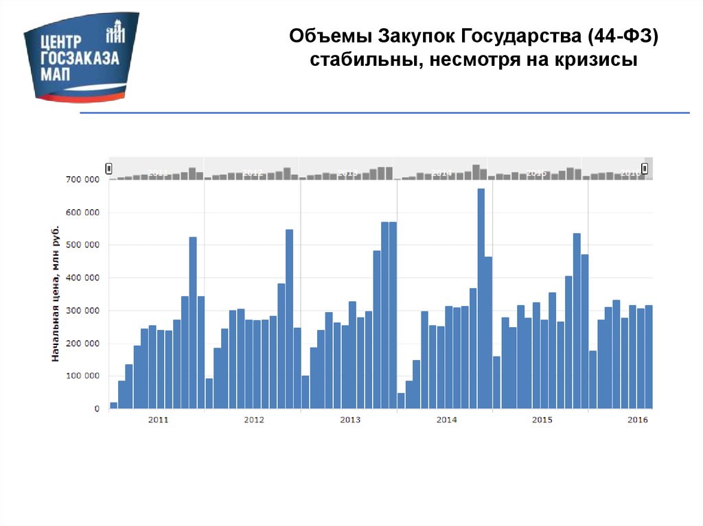 Объемы Закупок Государства (44-ФЗ)стабильны, несмотря на кризисы
