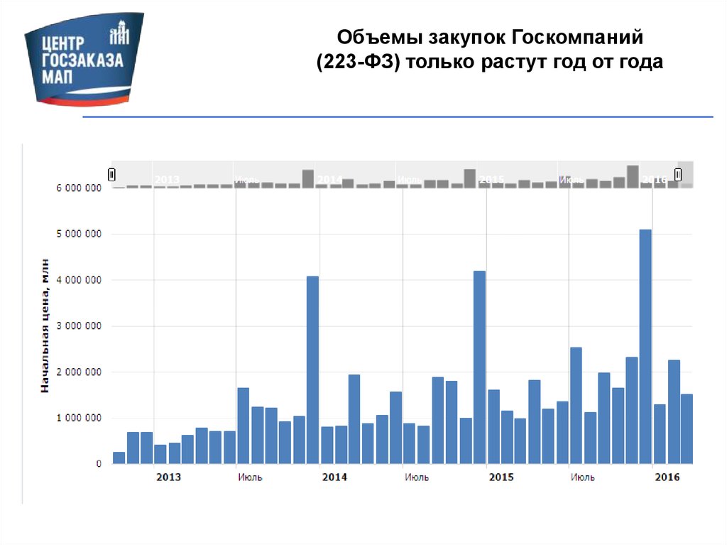 Объемы закупок Госкомпаний(223-ФЗ) только растут год от года