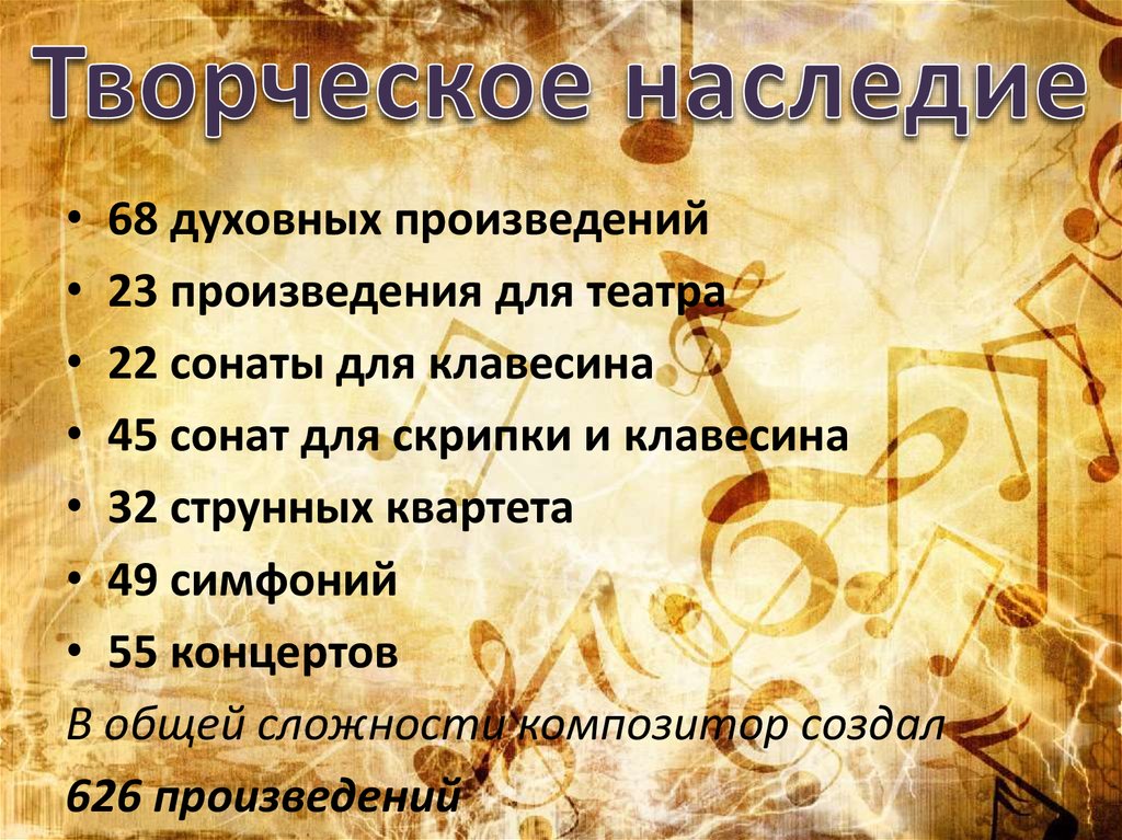 • 68 духовных произведений• 23 произведения для театра