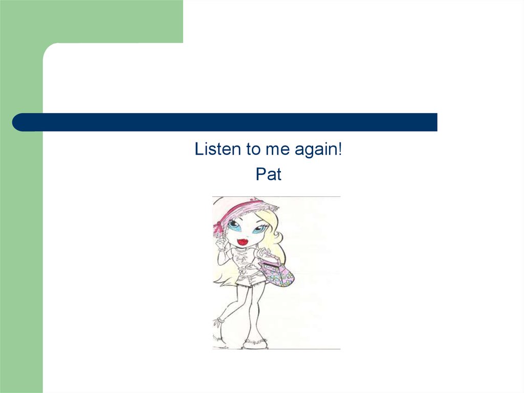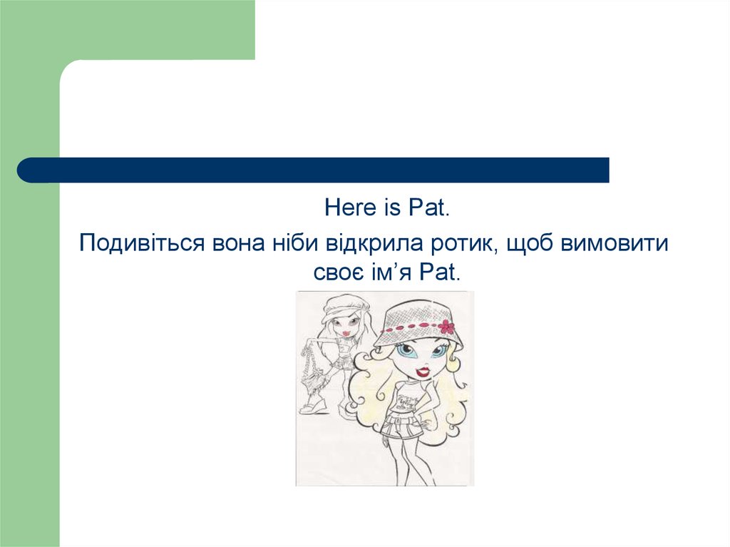 Here is Pat.Подивіться вона ніби відкрила ротик, щоб вимовити