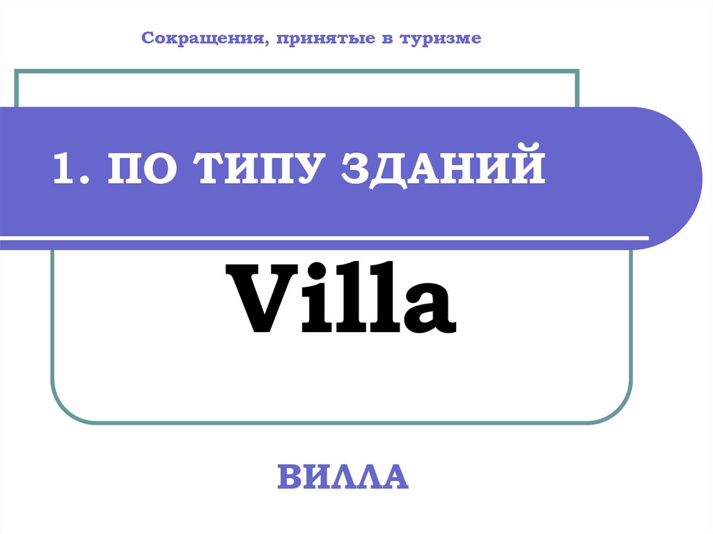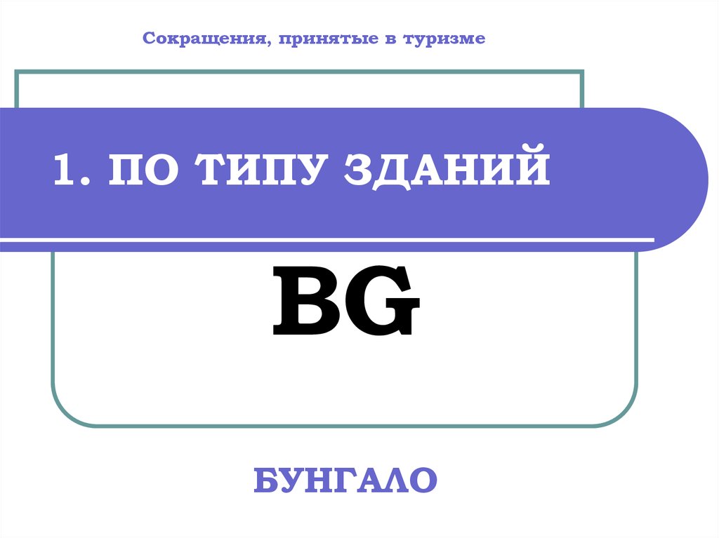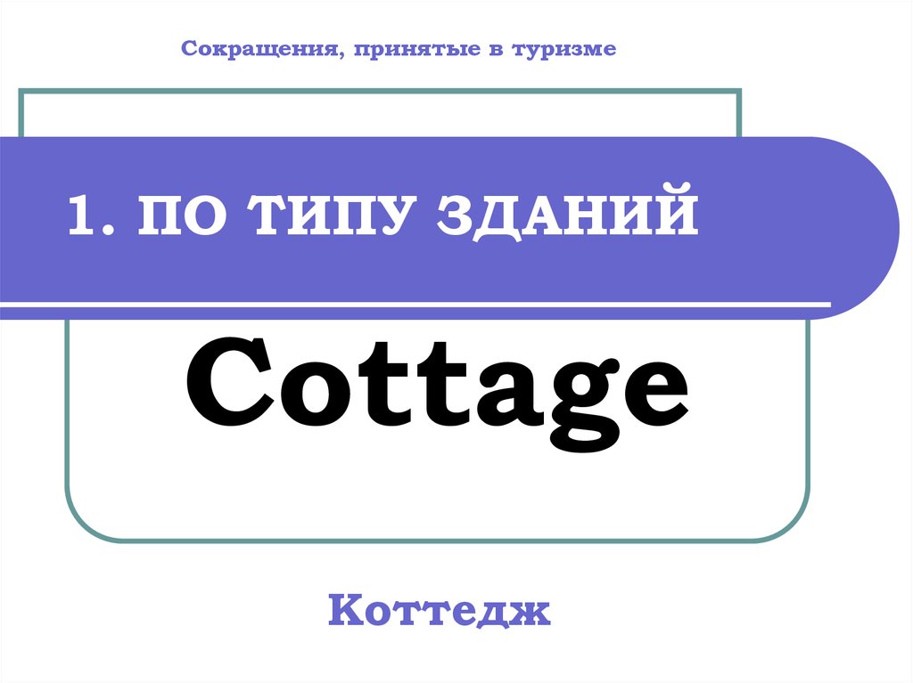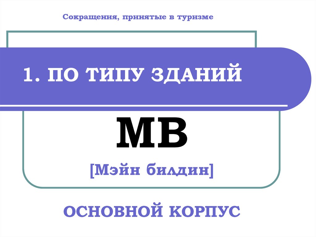 Сокращения, принятые в туризме1. ПО ТИПУ ЗДАНИЙ