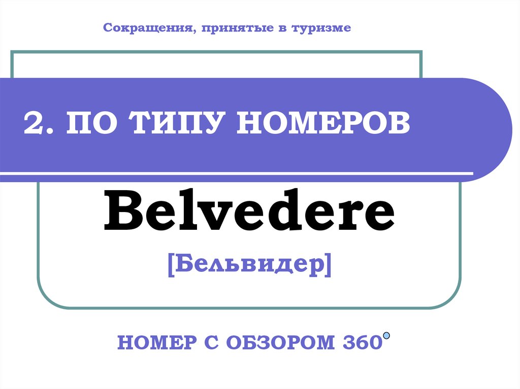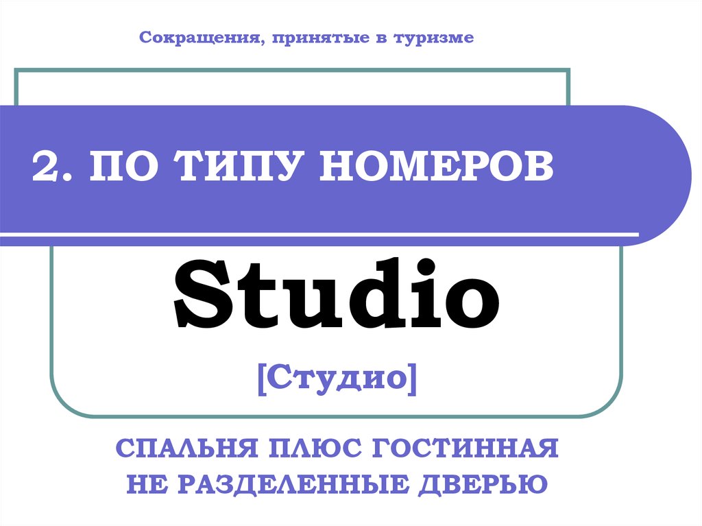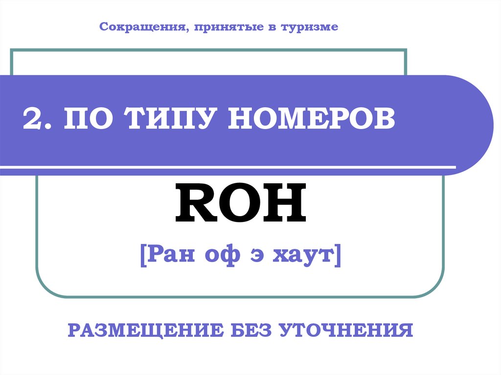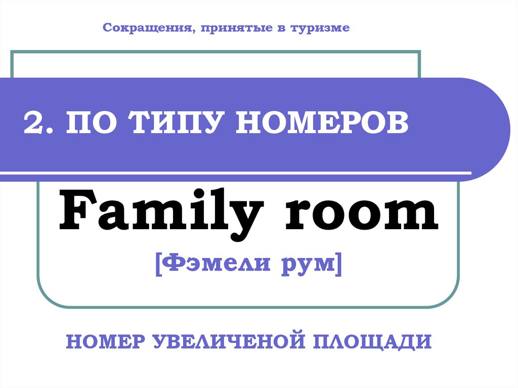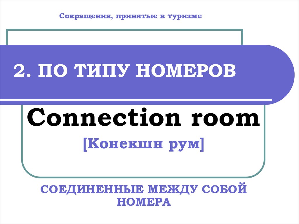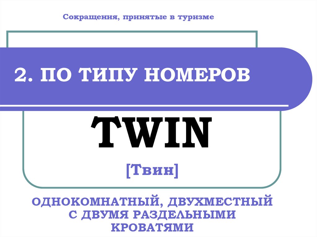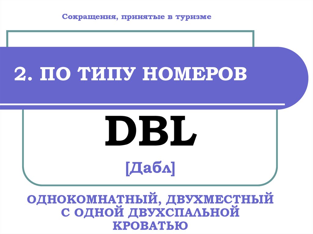 Сокращения, принятые в туризме2. ПО ТИПУ НОМЕРОВ