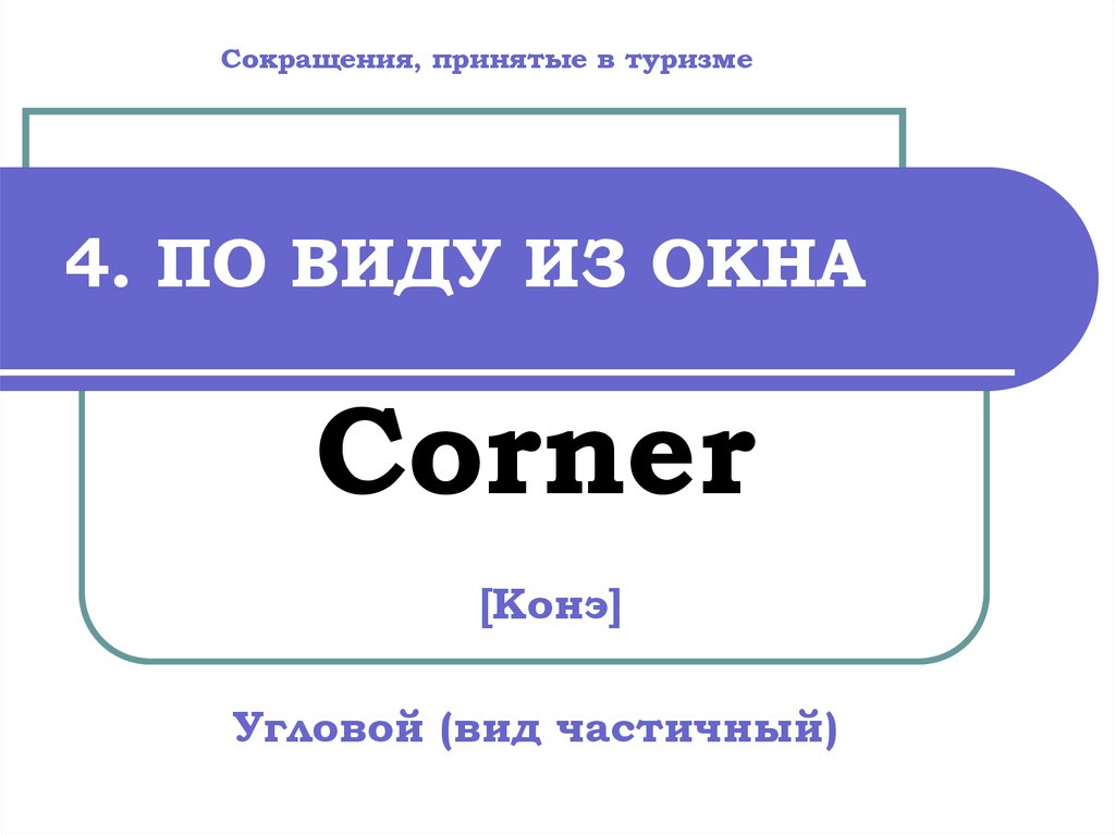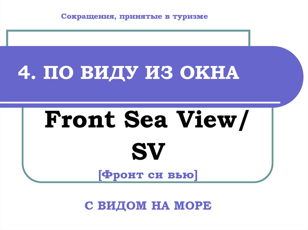 Сокращения, принятые в туризме4. ПО ВИДУ ИЗ ОКНА