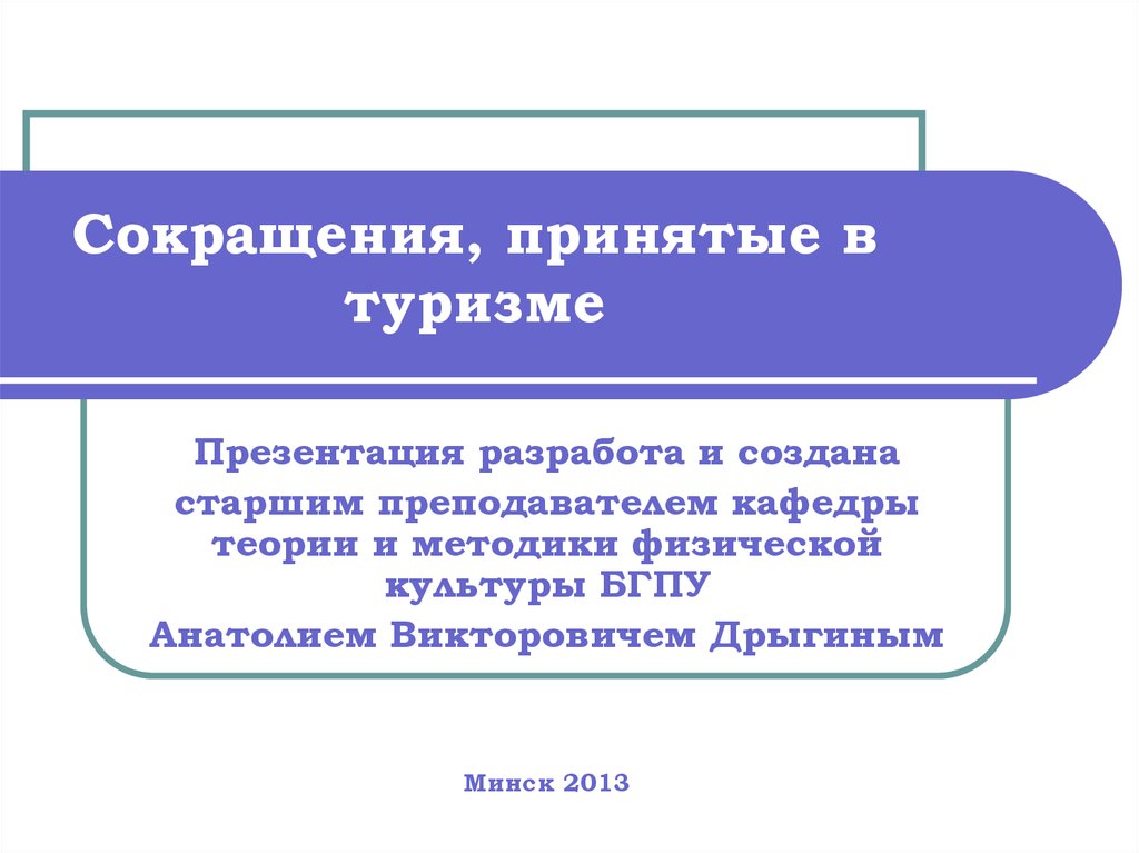 Сокращения, принятые в туризме. Теория и практика экскурсионного туризма