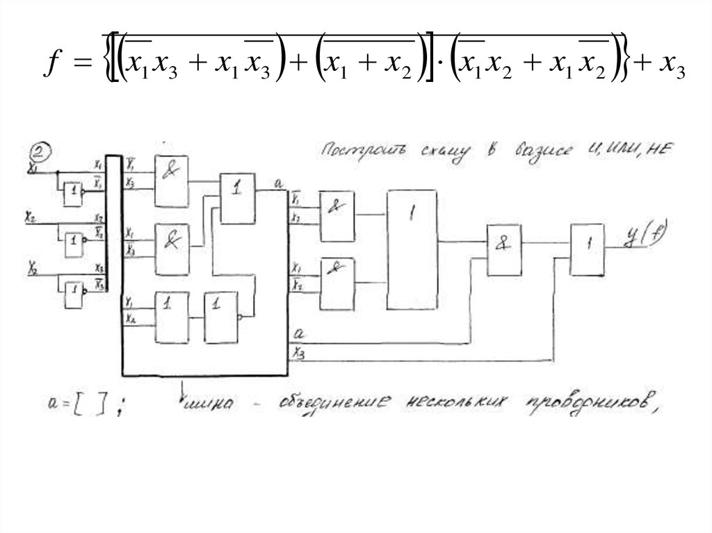 Базис И, ИЛИ, НЕ предполагает использование только 3х микросхем:& И логич. AND ^