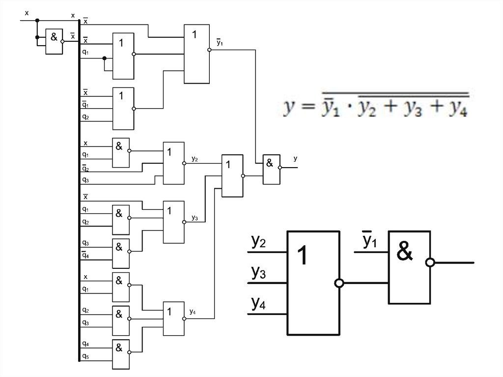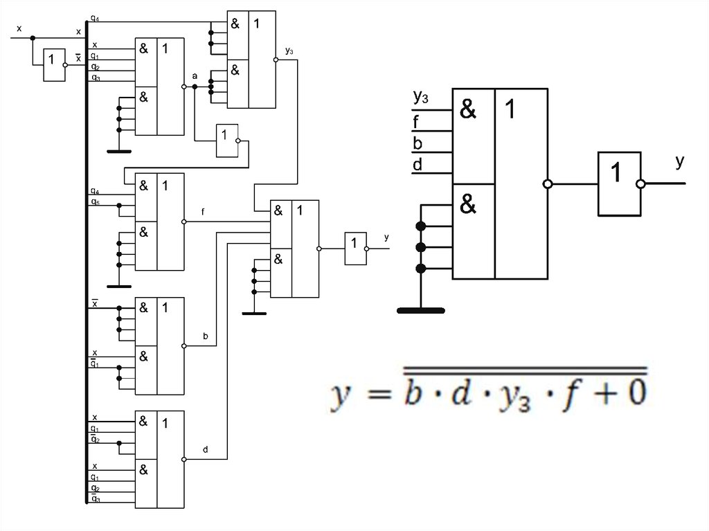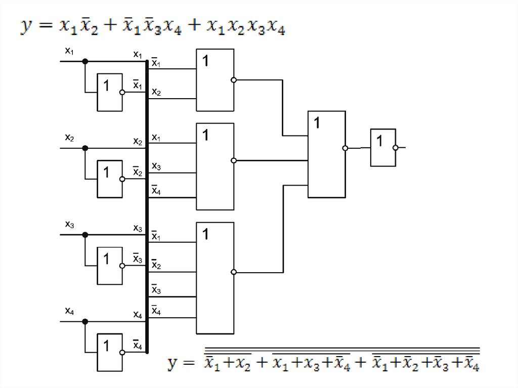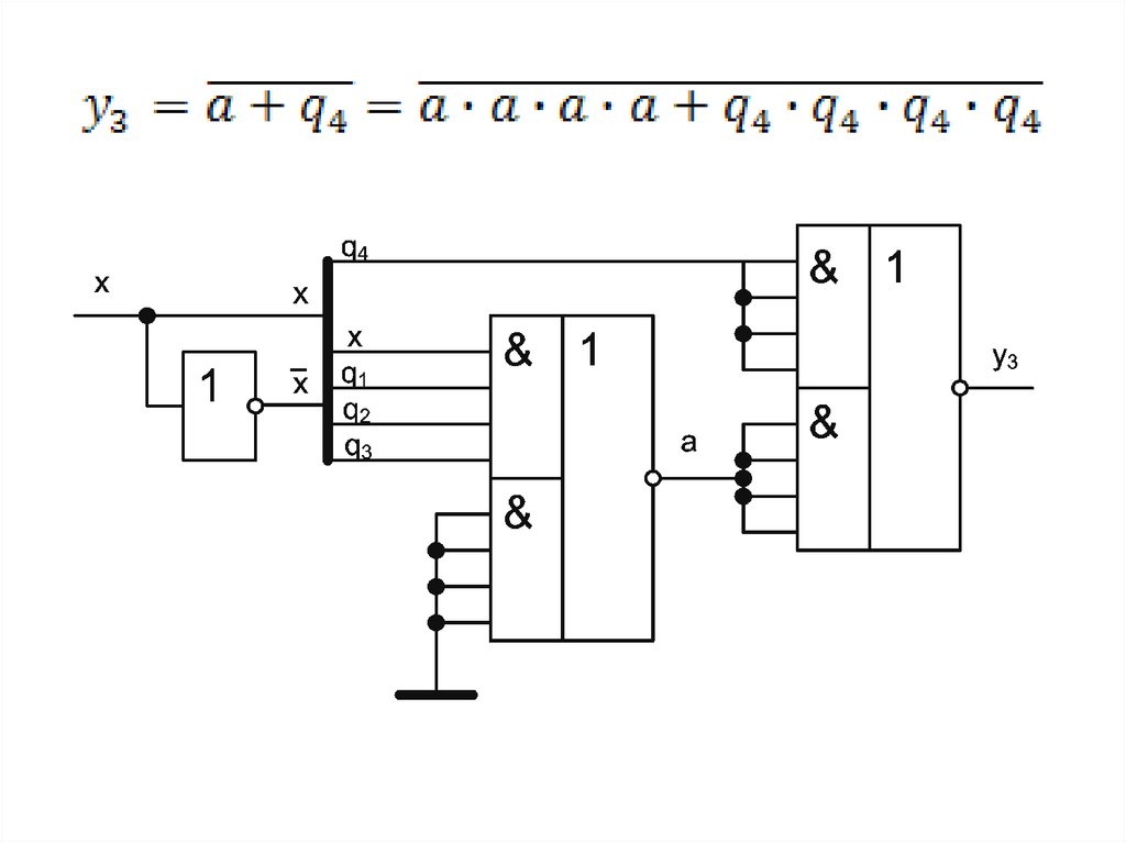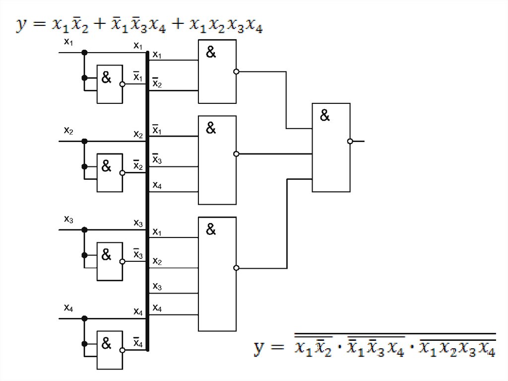 18. Схема в базисе И-НЕ (количество входов не ограничено)