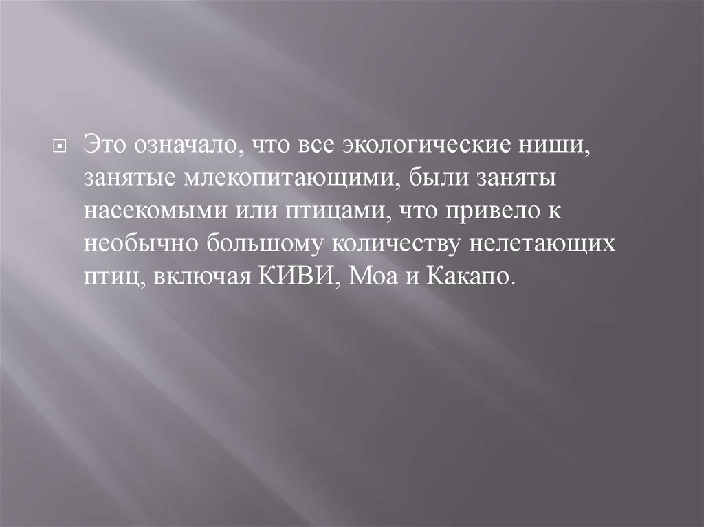 Это означало, что все экологические ниши,занятые млекопитающими, были заняты