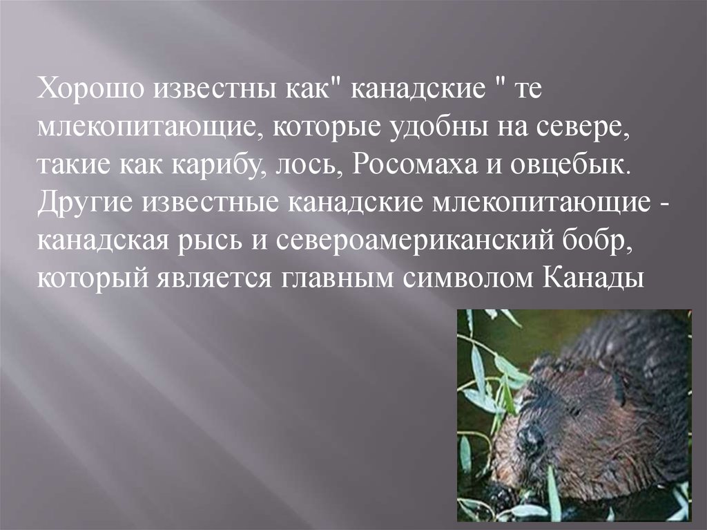 Другие известные канадские млекопитающие канадская рысь и североамериканский бобр,