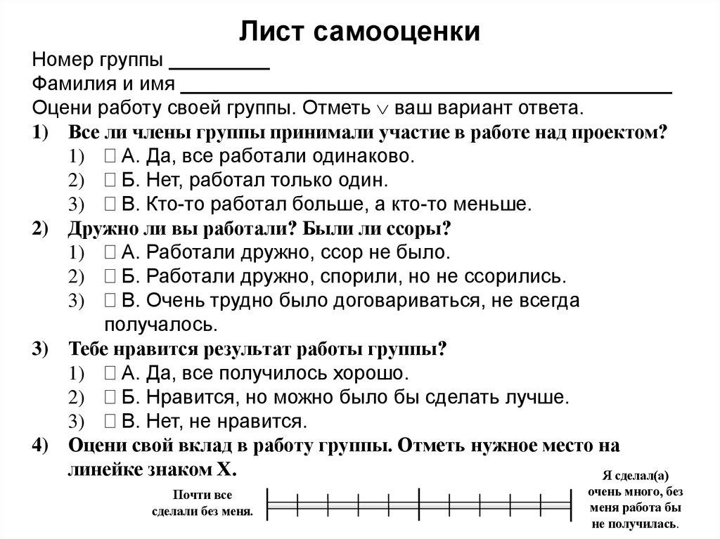 Лист самооценкиНомер группы _________