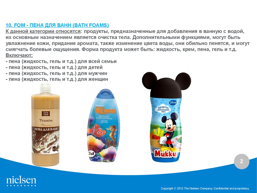 10. FOM - ПЕНА ДЛЯ ВАНН (BATH FOAMS)К данной категории относятся: продукты, предназначенные для добавления в ванную с водой,