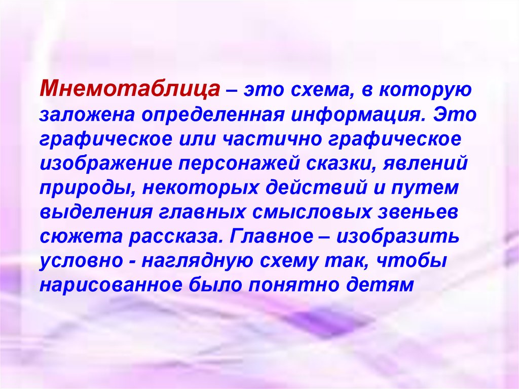 Мнемотаблица – это схема, в которуюзаложена определенная информация. Это