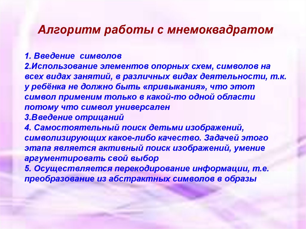 Алгоритм работы с мнемоквадратом1. Введение символов