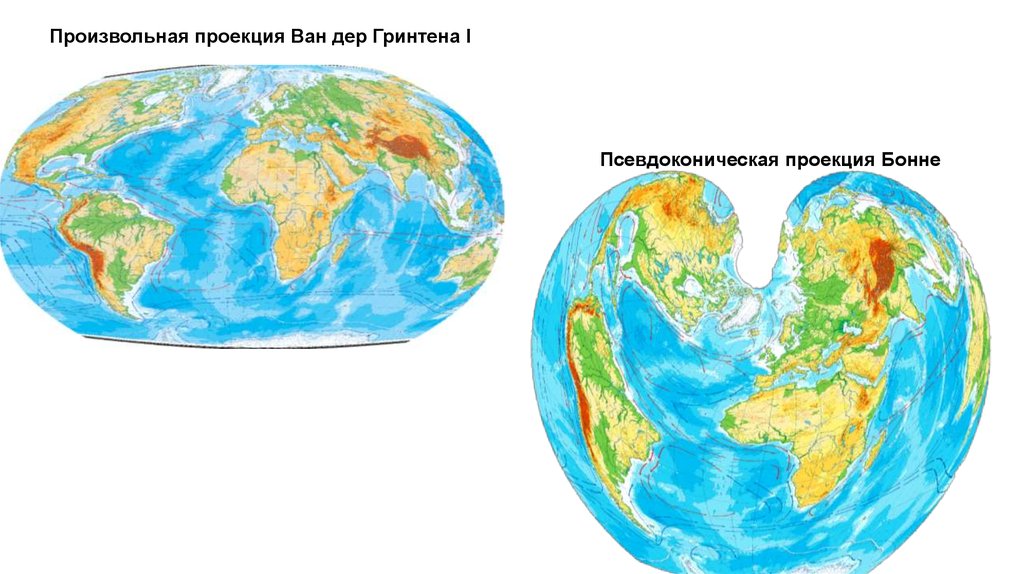 Произвольная проекция Ван дер Гринтена IПсевдоконическая проекция Бонне