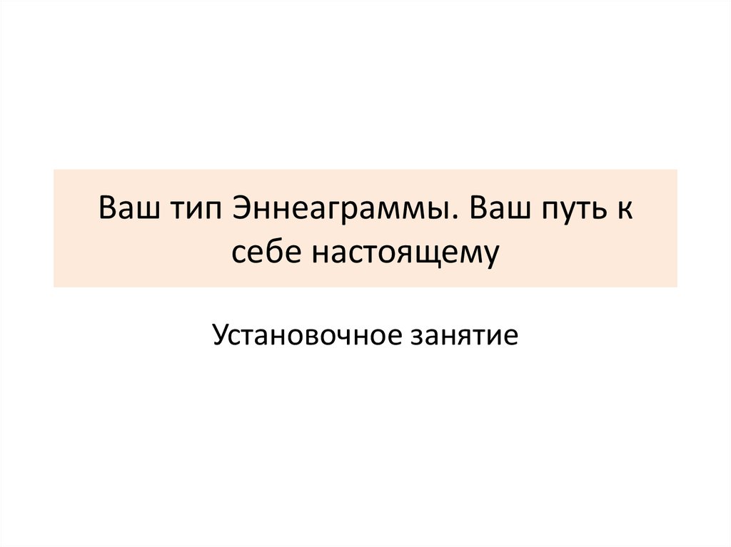 Ваш тип Эннеаграммы. Ваш путь к себе настоящему. Установочное занятие