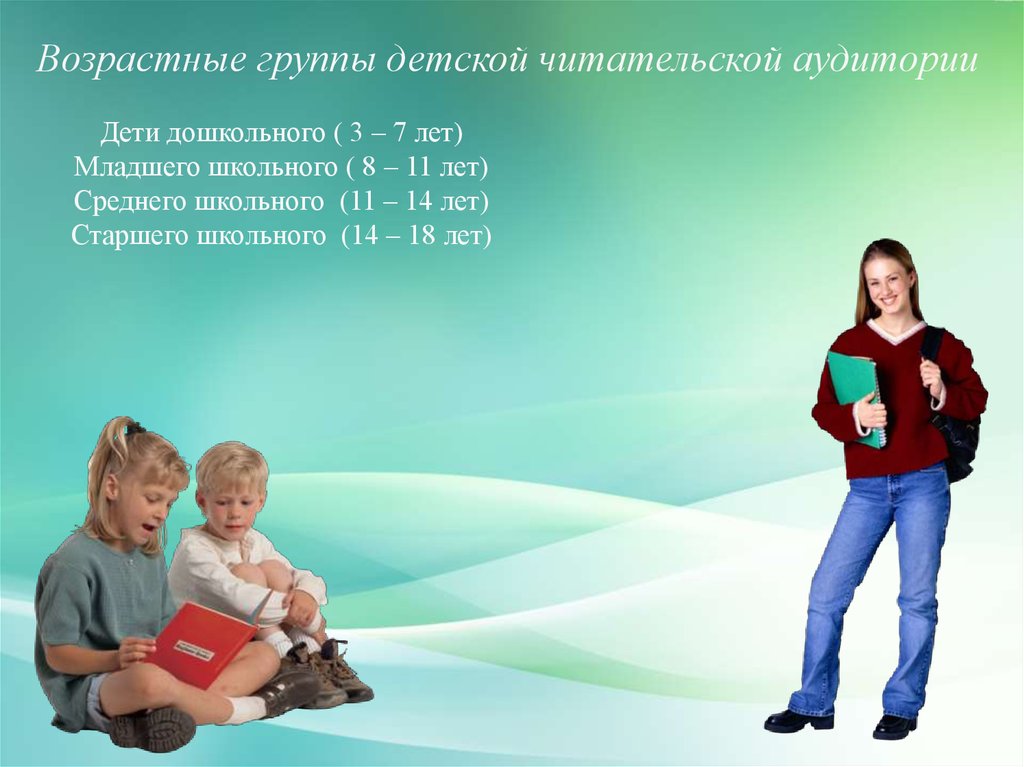 Возрастные группы детской читательской аудиторииДети дошкольного ( 3 – 7 лет)